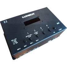 INTERFACE LUMIKIT A4Para aumentar a capacidade de universos do projeto usando o ARQ2, deverá ser usada a interface A4 no modo Art-Net, com isso serão adicionados mais 4 universos para cada interface A4. O ARQ2 e as interfaces A4 deverão ser interligadas por rede. |